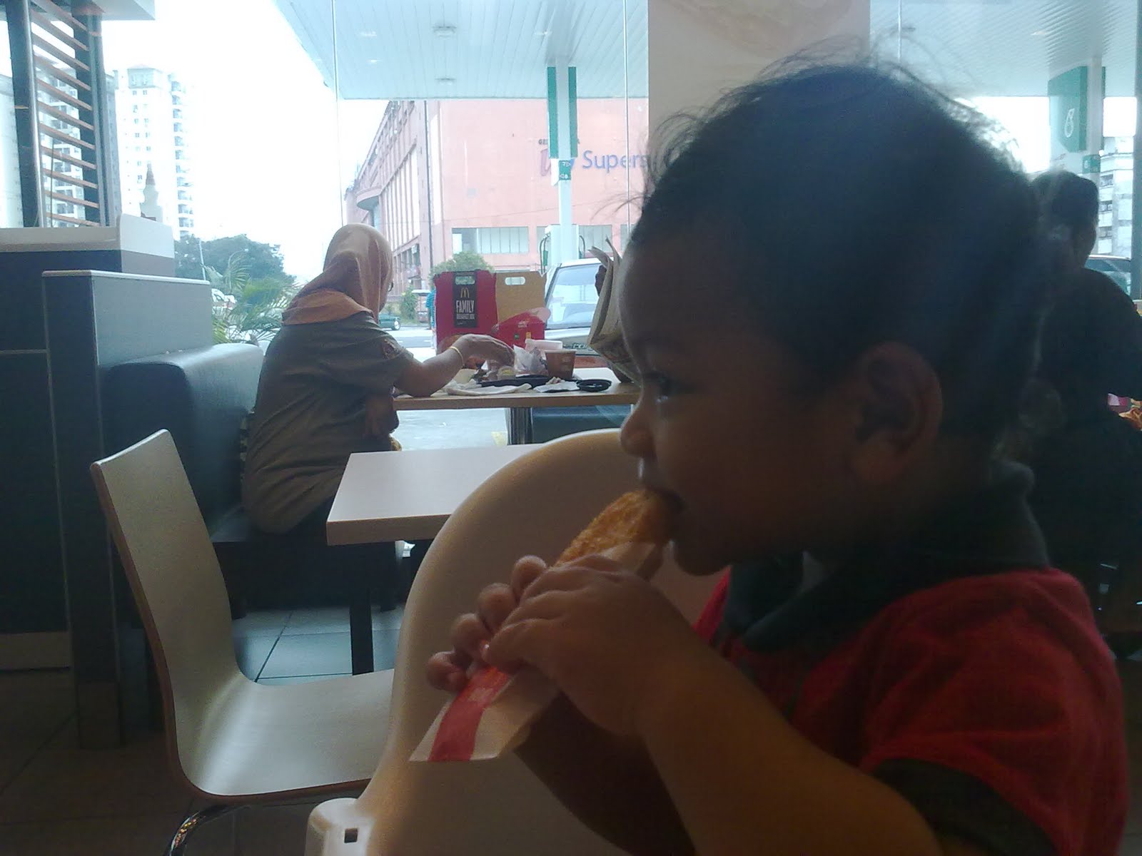 Suatu pagi ahad yang hening. Tetiba kami sekeluarga terasa macam nak bersarapan di McD. Maka dengan cargas kami pergi ke McD yang terdekat iaitu Taman Dagang. Cawangan ini memang mengalami krisis pekerja pada waktu pagi terutama pada hujung minggu. Selalunya pelanggan terpaksa menunggu agak lama untuk menerima makanan yang telah ditempah. Tapi nak kata lama sangat tu tidaklah. Nak kata cepat pun tak boleh. Agak lambat, tapi tak banyak sangat, nak kata tak banyak sangat-sangat pun tidak lah seteruk itu, tapi nak kata tak teruk langsung pun tak boleh, tapi secara keseluruhannya, tidaklah teruk mana, tapi bagi orang yang kurang sabar, kadang-kadang boleh jadi teruk sedikit, seperti yang saya kata tadi, tidaklah teruk sangat, bergantung kepada pendapat masing-masing.